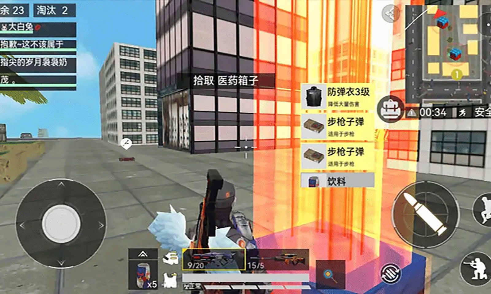 2、游戏手指在按键上不断点击让角色按照自己的操作移动,和超多的对手进行射击。