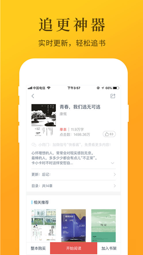 4. 免费,我们就是免费小说,并且永远免费,只要你想看书,就来免费小说书城,享受纯粹的精品阅读小说时光。