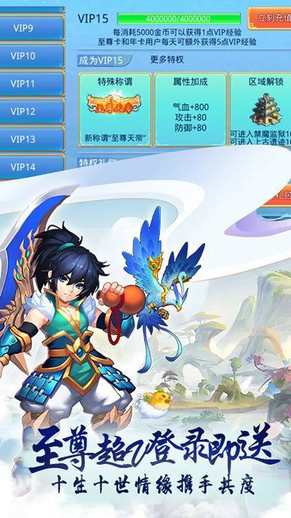 更有小号绑定功能最大化利用游戏内奖励,全部送给大号上线福利:上线送满v(VIP15)VIP11礼包免费领、1000万绑银、金宝箱*10、70级套装
