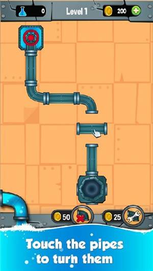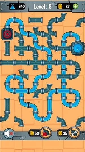 1、游戏中玩家用手指不断的点击管道控制管道的方向,正确的方向才能让水流顺利通过
