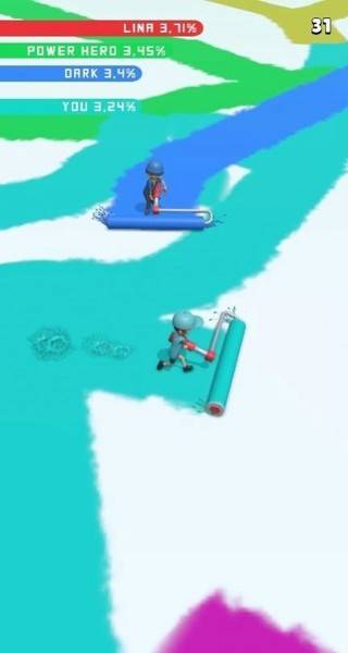 一款休闲游戏,在雪白的场地中玩家拿着刷子占着颜料开始面积的占领,每一位玩家使用的颜料颜色都是不同的,最后结算的时候会将玩家占领的面积显示出来帮助赢得比赛,快点下载游戏吧!