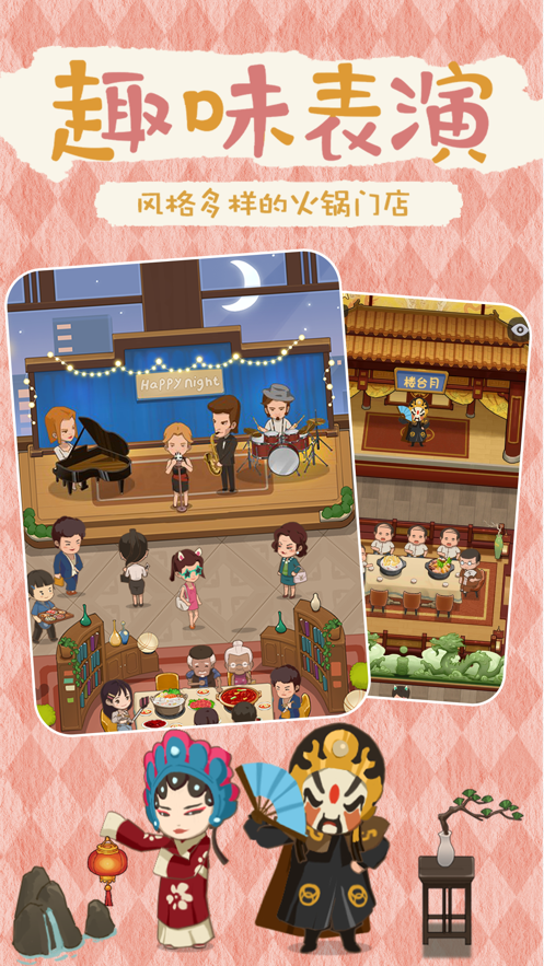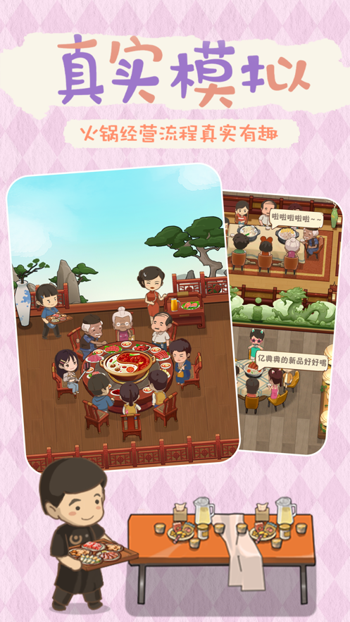 会有很多顾客来到自己的店铺中吃火锅,玩家需要根据顾客的要求将需要的锅底和食材全部都弄好交给顾客,全部吃完后用手指点击就能将资金收集,资金可以帮助玩家更好的发展店铺,快点下载游戏吧!
