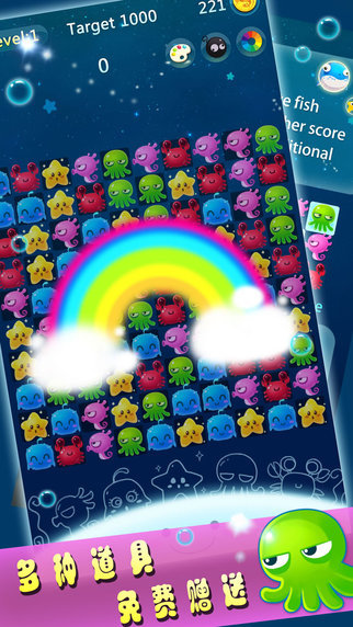 《开心泡泡鱼》是一款非常有意思的休闲益智类手游,采用了物理的玩法,在游戏过程中,你需要根据一定的物理相关知识,来绘制线,其实也很简单,你准备好挑战了吗?那就下载开心泡泡鱼手游吧,进入水族馆,与各种鱼类玩耍。
