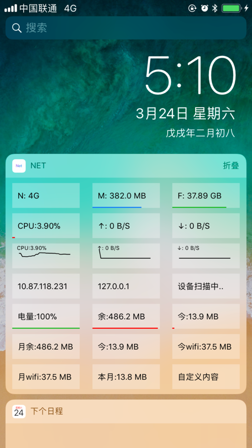 《Net》是一款非常简约方便的网络速度和流量监控的app,统资源占用很小。当你在浏览网页或者传送数据时,NetTraffic 可以实时监测你的网络使用情况,既有数字显示又有图形显示。通过NetTraffic,可以观测日流量、周流量、月流量等累计统计数据。