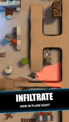 游戏中敌人的视线是有限的,红色的范围就是敌人的可视角,利用这个特点更好的闯关