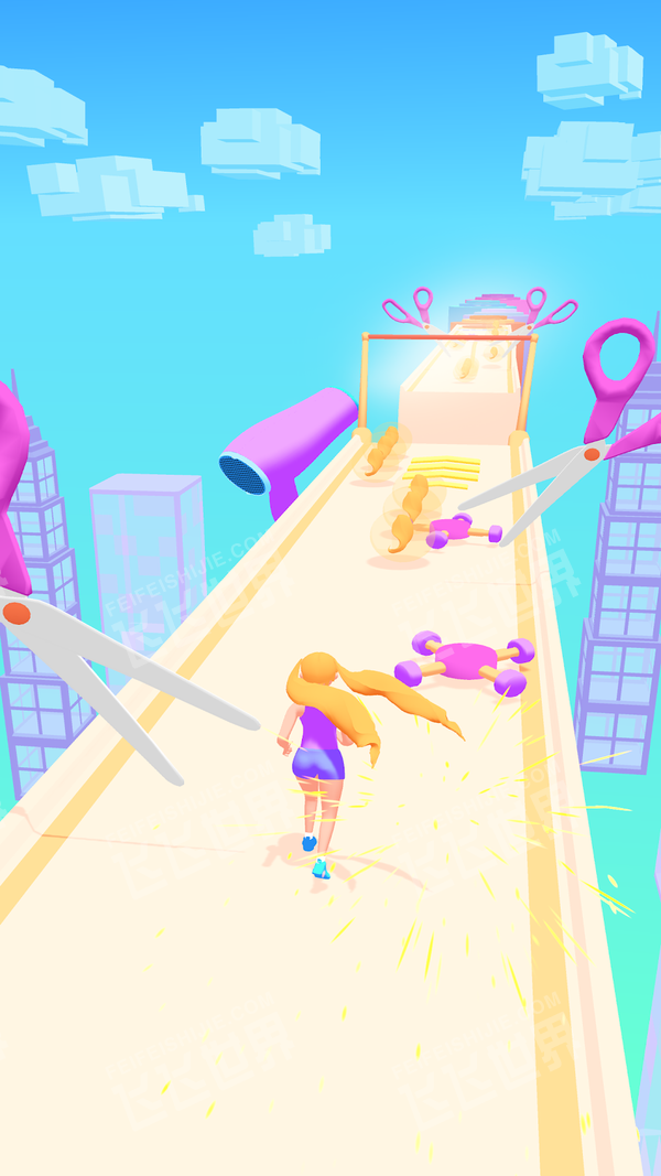 3、游戏中玩家需要不断的收集头发,当角色没有了头发碰到了剪子和障碍闯关就失败了