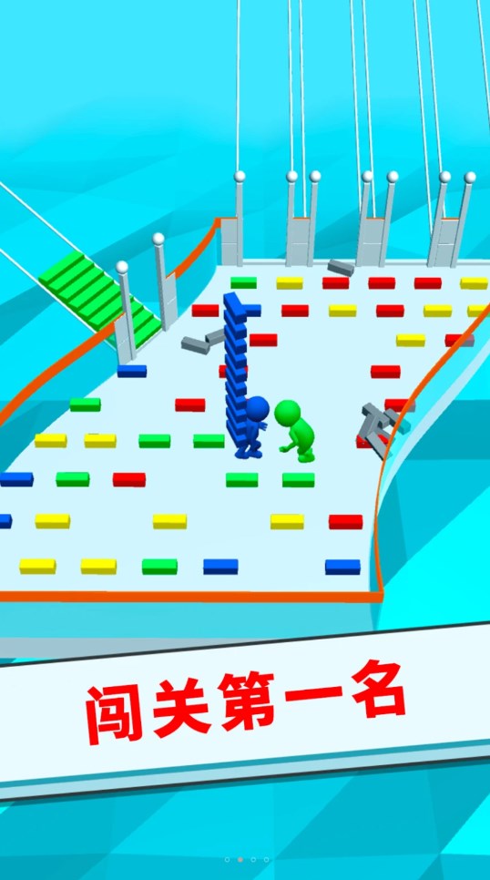 在关卡平台的地面上有很多砖块可以让玩家收集,砖块可以为玩家桥搭,这样小人能够在不同的平台上自由的移动,率先到达终点的玩家就是胜利者,会有很多的奖励可以获得哦,快点下载游戏吧!