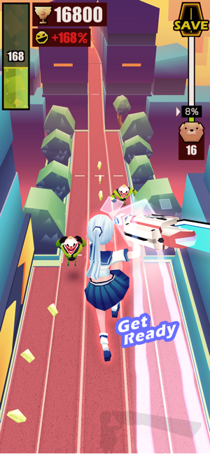 跑酷游戏太平淡?那就加速冲刺!《战斗少女跑酷》增加了加速创新操作,下滑再下滑,加速再加速!感受在极限速度下的连续操作感和打击感吧!独特Fever模式,古典与杀戮,展现反差中的暴力美学。与此同时,游戏的关卡末尾,有轻松熊在迎接一路奋战的疯狂少女,暴力以外,可爱也必不可少!
