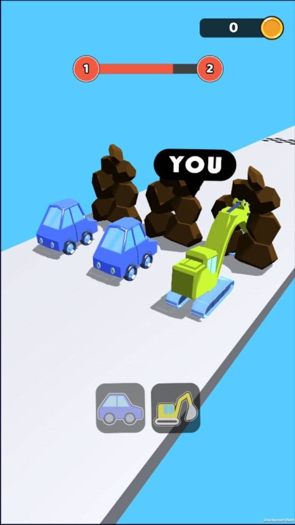 2、游戏中小车会自动的前进,玩家的任务就是在关卡中选择正确的车子继续前进闯关