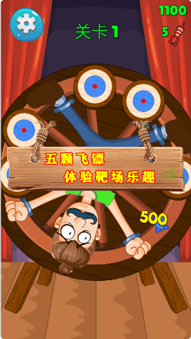 3、游戏的关卡是没有时间限制的,玩家需要瞄准靶子的位置控制飞刀射击获得分数