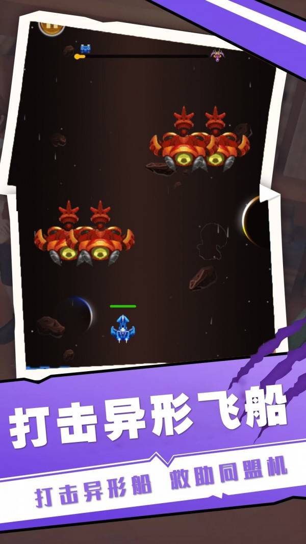 在太空的环境中玩家能够遇到很多的敌人,不停的移动飞船的位置可以完成躲避和攻击的任务,收集超多的资源来提升飞船的不同属性,快速的提升飞船的战斗力完成很多的挑战,快点下载游戏吧!