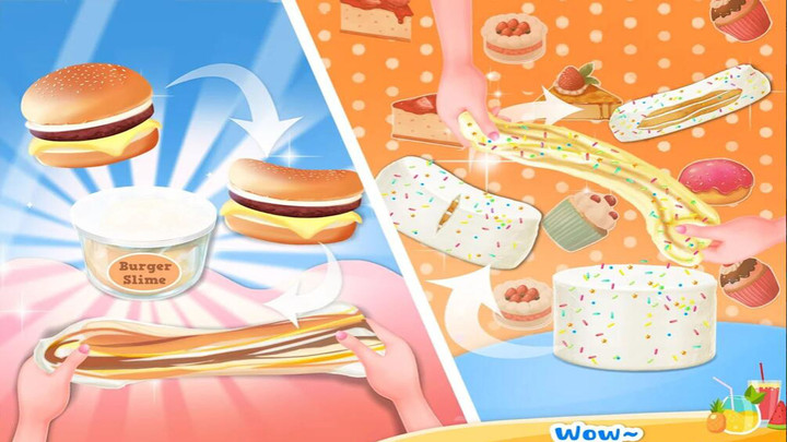 玩各种食物史莱姆,披萨泥,蛋糕泥,面条泥,汉堡泥和泥泥,根据需要选择。