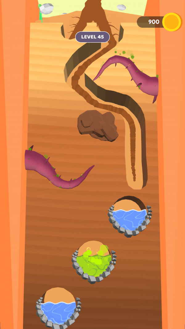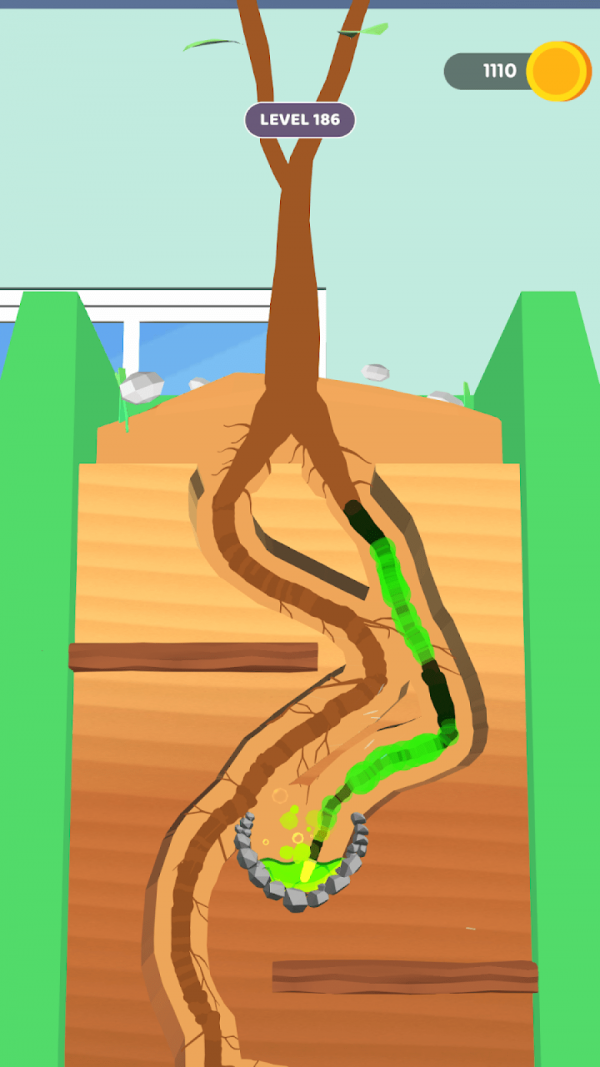 4、游戏的关卡中有水的地方都是不同的,玩家需要控制植物的根往有水的地方延伸