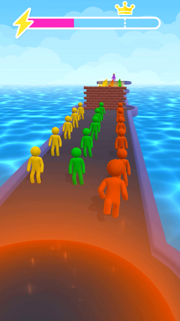 游戏中有很多的小人需要玩家收集,玩家收集颜色相同的小人提高自己的体积,但是只有收集相同的小人才能够继续闯关,来到游戏关卡的终点打败巨人成功通关,快点下载游戏吧!