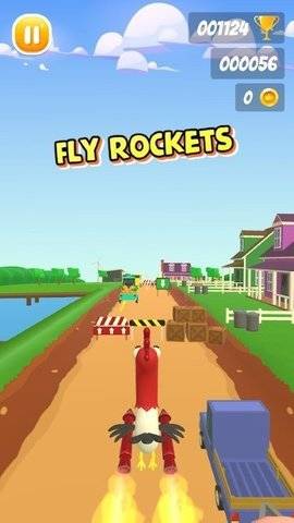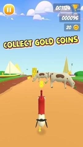 公鸡快跑是款动作跑酷游戏,在关卡的前方有很多的障碍在阻碍公鸡前进,玩家的任务就是控制公鸡在道路中不断的躲避障碍继续前进,会有很多的道具可以让玩家收集使用哦,快点下载游戏吧!
