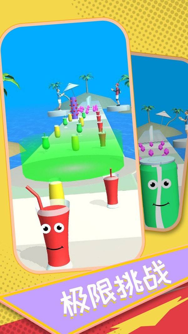 1、游戏中玩家的任务就是收集一样的杯子,这样杯子会不断的变大完成终点的任务