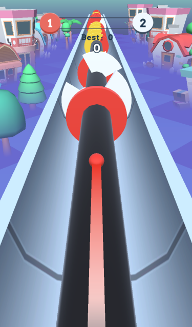 1、游戏小球是自动的关卡中移动的,但是小球的前方会有很多颜色不同扇叶需要躲避。