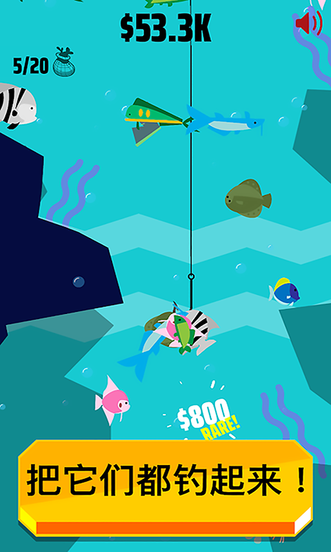 4、游戏中提供多种钓鱼技巧,例如轻轻拖拽、迅速收线等,玩家可以根据实际情况灵活运用,提升游戏体验。