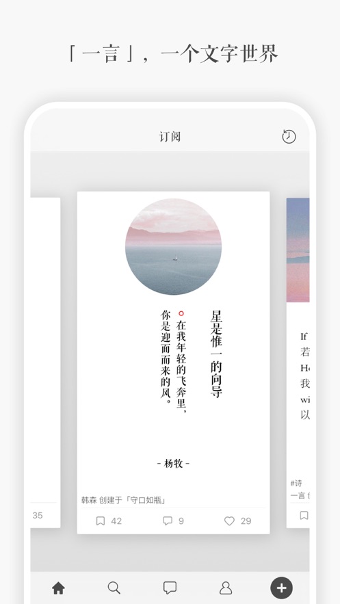 字句收藏本:一段文字、一篇歌词、几句对白,总有触动到你的字句,「一言」为你铭记这一瞬。