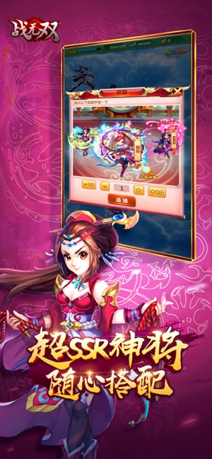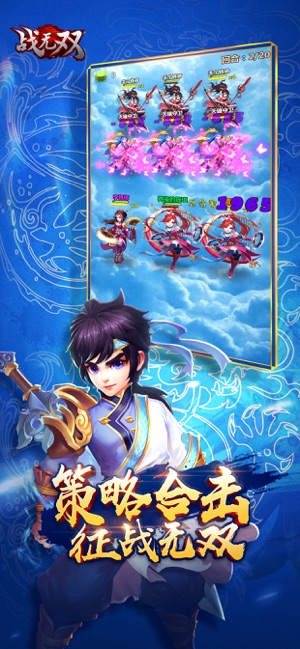《战无双》是一款三国策略卡牌手游,游戏内主要围绕三国及封神榜的部分英雄人物为核心和其他时代的英雄人物进行跨时空的对战。游戏过程中还可以免费招募一名武将,完善对战阵容搭配,获得最终胜利。