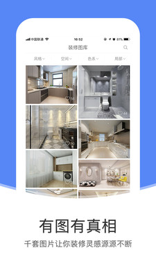 装修图库是一款新式家居图库应用,在装修图库的世界里,大大小小的空间、千姿百态的风格与色彩斑斓的格调都能满足你对灵感美图和渴求和阅读选择的体验。让自己成为自家的设计能手,让家日日都在变,天天都不同。