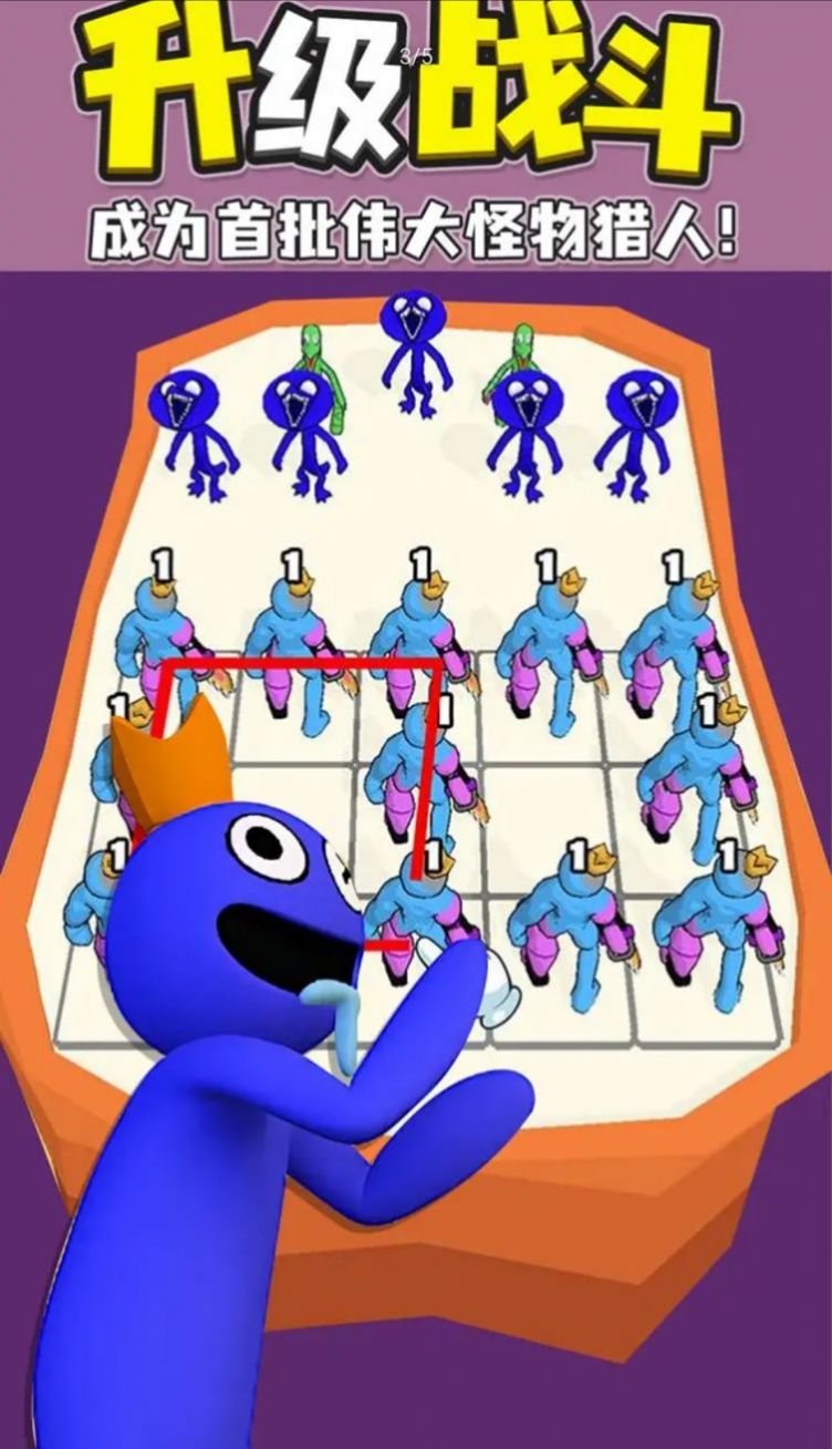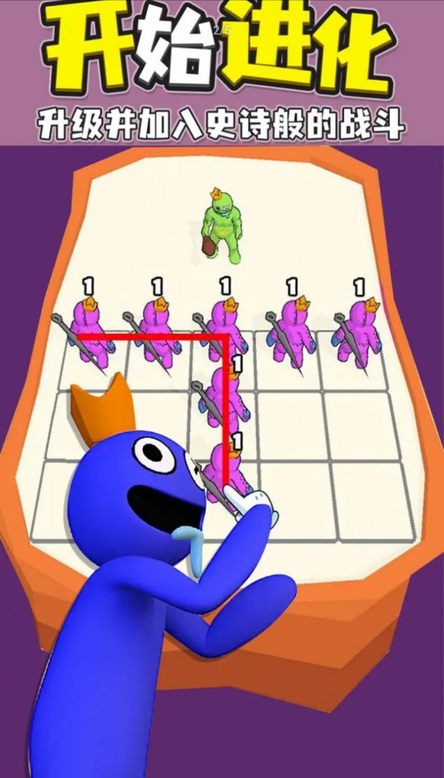 彩虹朋友融合战争是款策略塔防游戏,玩家的任务就是不断的提高小人的实力,在关卡中小人的力量可能无法和敌人战斗,这个时候就需要合并小人快速的提高小人的实力,快点下载游戏吧!