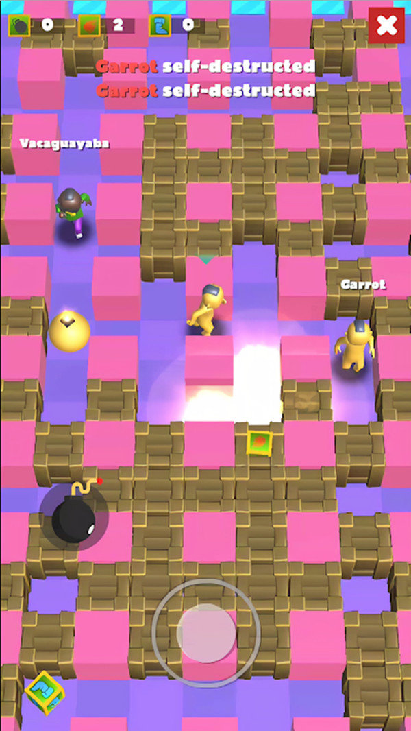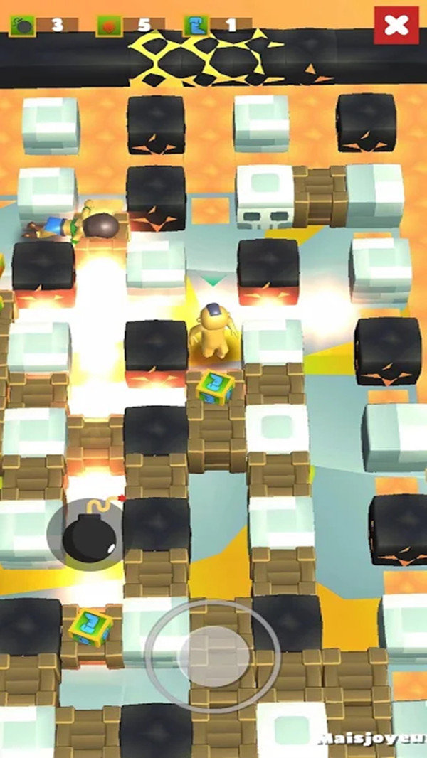 炸弹人淘汰赛是款休闲竞技游戏,在关卡的开始关卡中有很多的墙会阻碍玩家的移动,玩家们需要用手中的炸弹将这些妨碍移动的障碍炸掉,成功的穿梭在关卡的各个角落中,快点下载游戏吧!