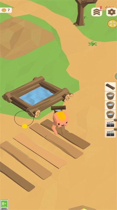 1、玩家需亲自砍伐树木,搜集资源,改善生存环境。