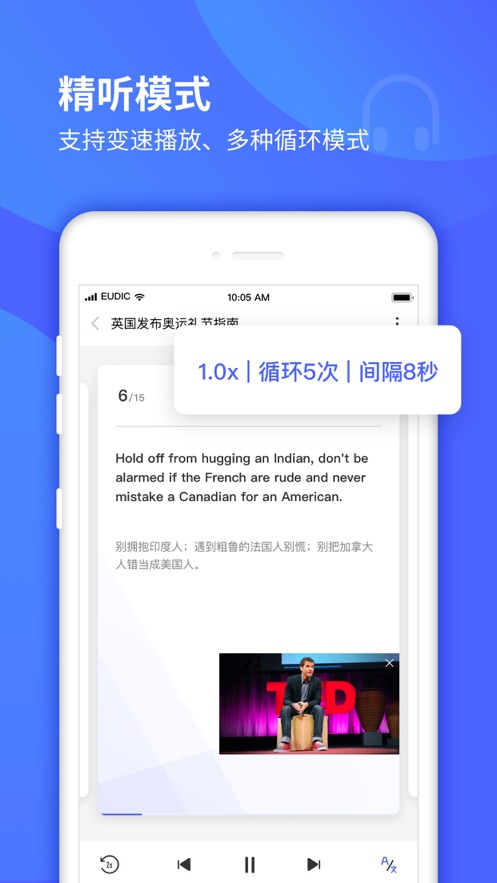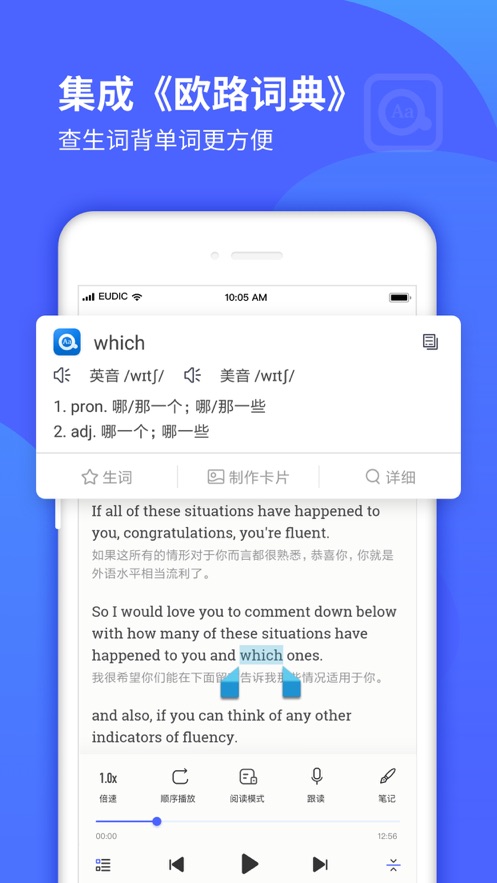 你可以自动的调节播放的速度和阅读模式,也可进行跟读;