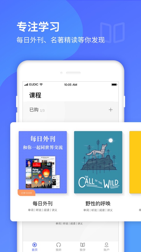 《每日英语听力学习版》是一款非常专业的英语听力学习类软件,非常的方便实用,全方位覆盖知识面,专为听力测试打造,各种各样的原声读物任你挑选,创新的学习方法提高效率,快来下载吧!