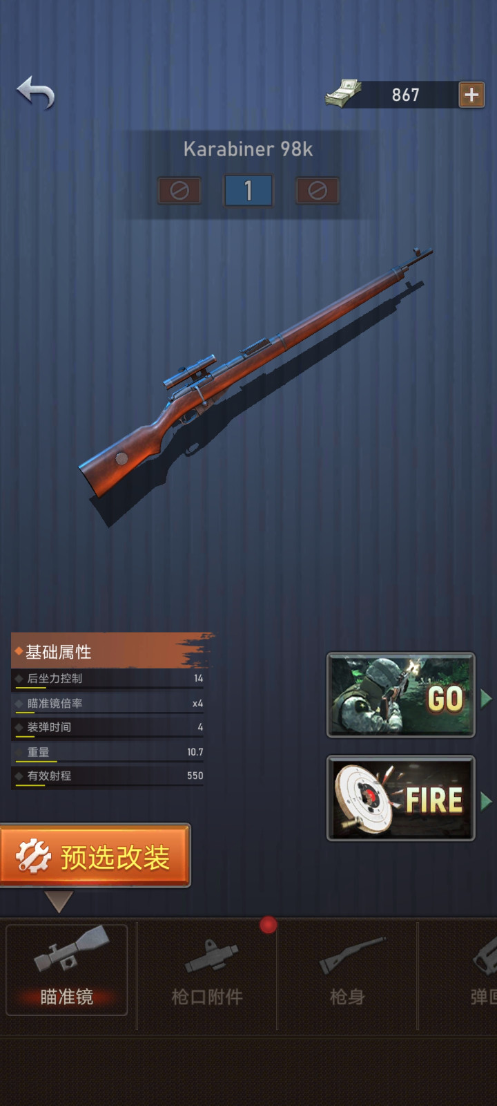 2、游戏关卡的射击任务完成能够有资金奖励,可以积累资金到一定购买枪支。