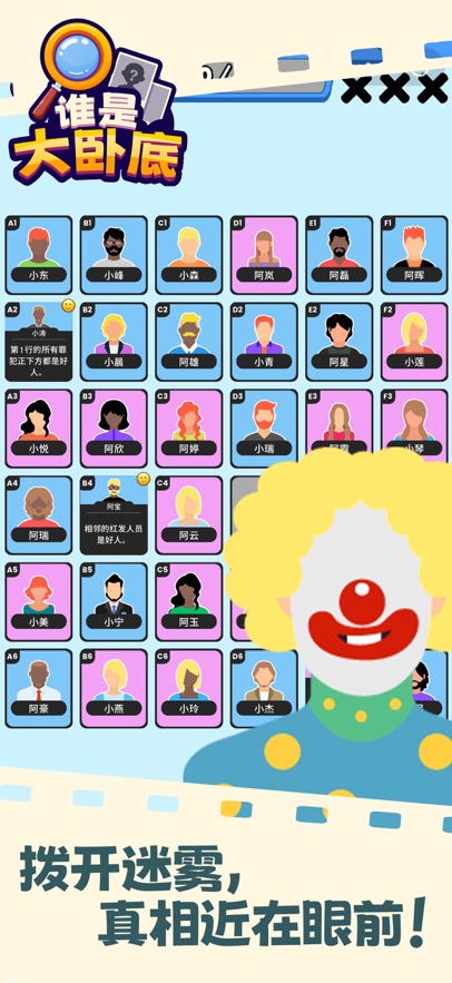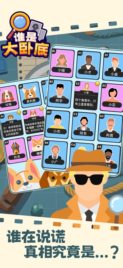 化身侦探找出卧底(凶手),这是一款独特的智力游戏和逻辑谜题融合体,是一场对你的逻辑推理能力的终极考验。深入探索、挑战谜团、找出罪犯、保护无辜者,并解开复杂的爱情、家庭和友谊之网。对于挑战自己的智商和推理能力吗?来试试吧!