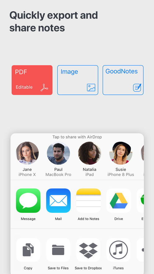 * 通过将文稿拖到其他应用中,可从 GoodNotes 中导出文稿