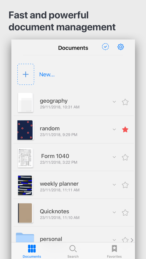 * 收藏夹视图:将文件夹、文稿或页面标记为收藏夹,无论它们存储在库中什么位置,轻点一下即可将其打开