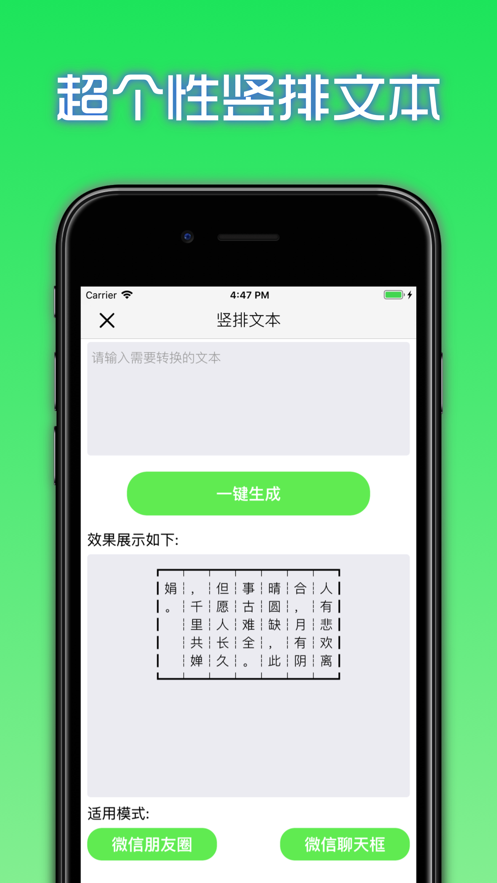 3、还可设置竖排文本不论微信朋友圈还是聊天一键生成。