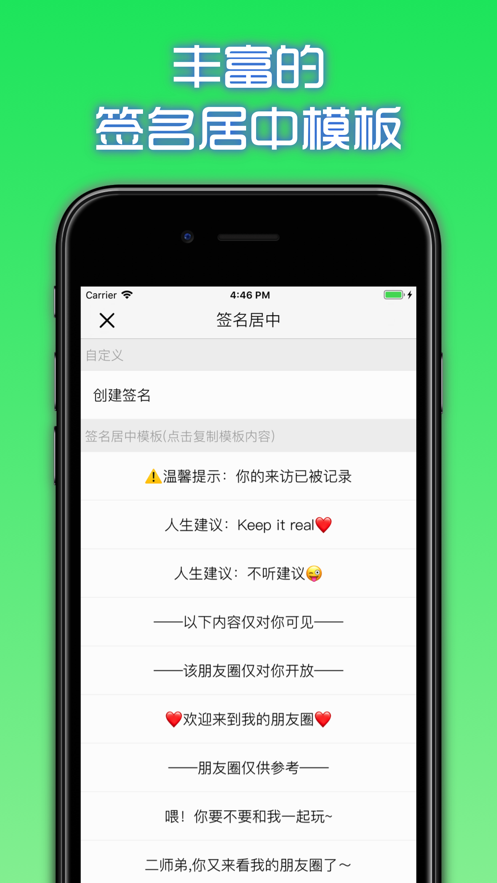 1、火爆朋友圈的个性签名居中随心所欲设置;
