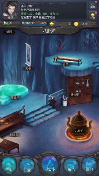 你拥有自己的洞府可以进行打坐,布下阵法聚灵,可以炼丹,还可以吟诗作赋,抚琴等。