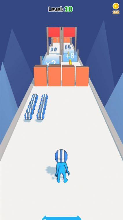 4、游戏中小人会在道路上面自动的前进,在前进的时候滑动屏幕左右移动位置来到终点
