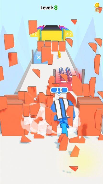 玩家控制小人在关卡的道路中前进进行闯关,在道路的前方会有很多的障碍需要小人冲破,可以收集头盔道具提高自己的实力安全的冲破这些全部的障碍,来到游戏的终点,快点下载游戏吧!