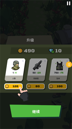 1、游戏在关卡中射击的时候还能进行技能选择,攻击和防御都提升完成激烈的射击。