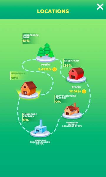 玩家在游戏中不断的砍伐树木进行加工获得超过的收益,玩家可以使用这些收益慢慢的将自己的加工厂发展起来,在游戏中还要需要打造自己的家园,快点下载游戏吧!