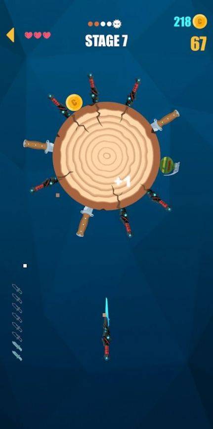 一款休闲益智,在关卡的中间有自动旋转的靶子,玩家将游戏提供的刀子全部扎进靶子中,随着靶子上面的刀子越来越多能够扎刀子的位置越来越少,玩家需要把握时机将刀子全部扎进去,快点下载游戏吧!