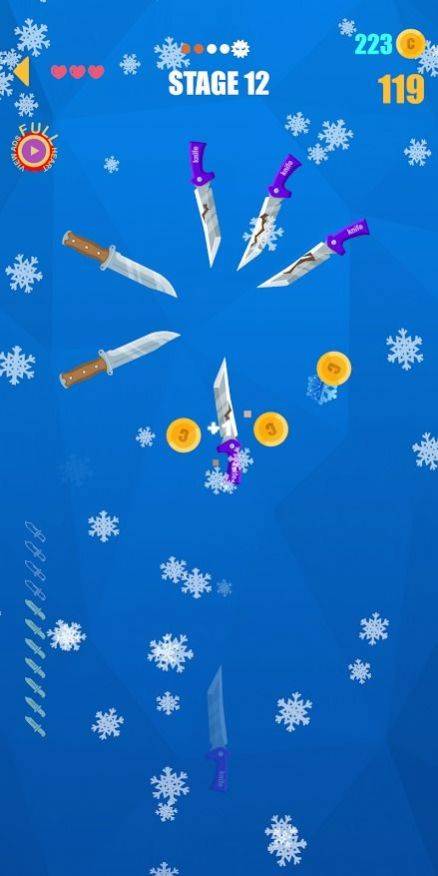 1、游戏的玩法非常简单,玩家的任务就是将一定数量的刀子全部扎进靶子上