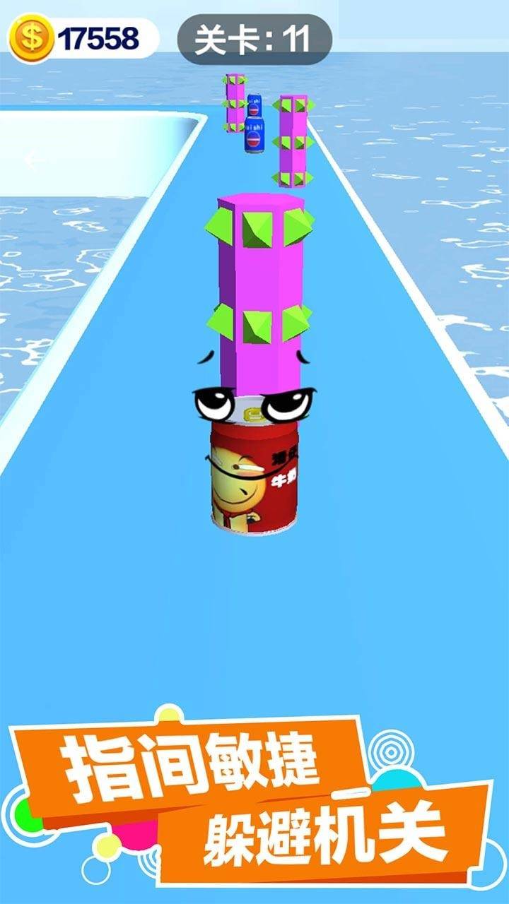 一款休闲游戏,关卡道路上面摆放的瓶子都是可以让玩家收集的,但是需要及时的躲避形状不同的瓶子才能够继续前进,不断的前进来到终点完成挑战得到很多奖励,快点下载游戏吧!