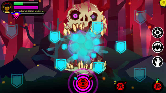 玩家必须转动屏幕,尝试格挡和反击来自不同方位的敌人。操作很密集。这是《断臂》做得最棒的地方之一,我个人也偏爱密集操作,让我的手指闲住一分钟我就可能流失。