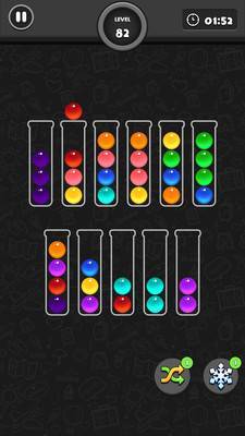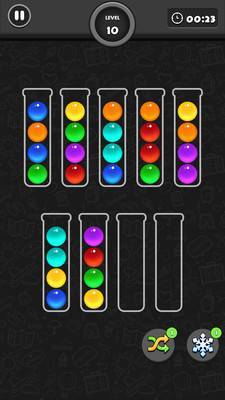 一款休闲游戏,采用经典的分类玩法来打造游戏的玩法,在试管中会有颜色不同的小球放在其中,玩家需要将这些小球放在放在不同的试管中,完成所有的分类任务,快点下载游戏吧!
