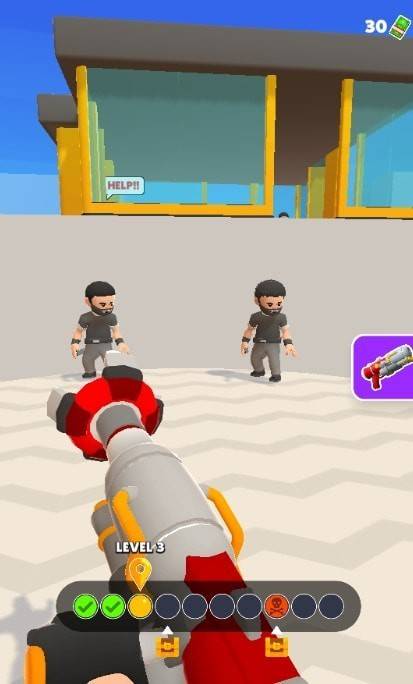枪支射出的并不是子弹而是钩子,玩家可以收集不同的枪支射出不同的钩子帮助自己完成挑战,关卡中有超多的小人在等待玩家的钩子,还有道具可以帮助玩家哦,快点下载游戏吧!
