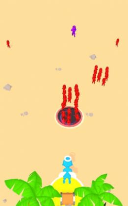 1、游戏中玩家努力的移动黑洞的位置将小人全部吞噬,转化成更多的蓝色小人