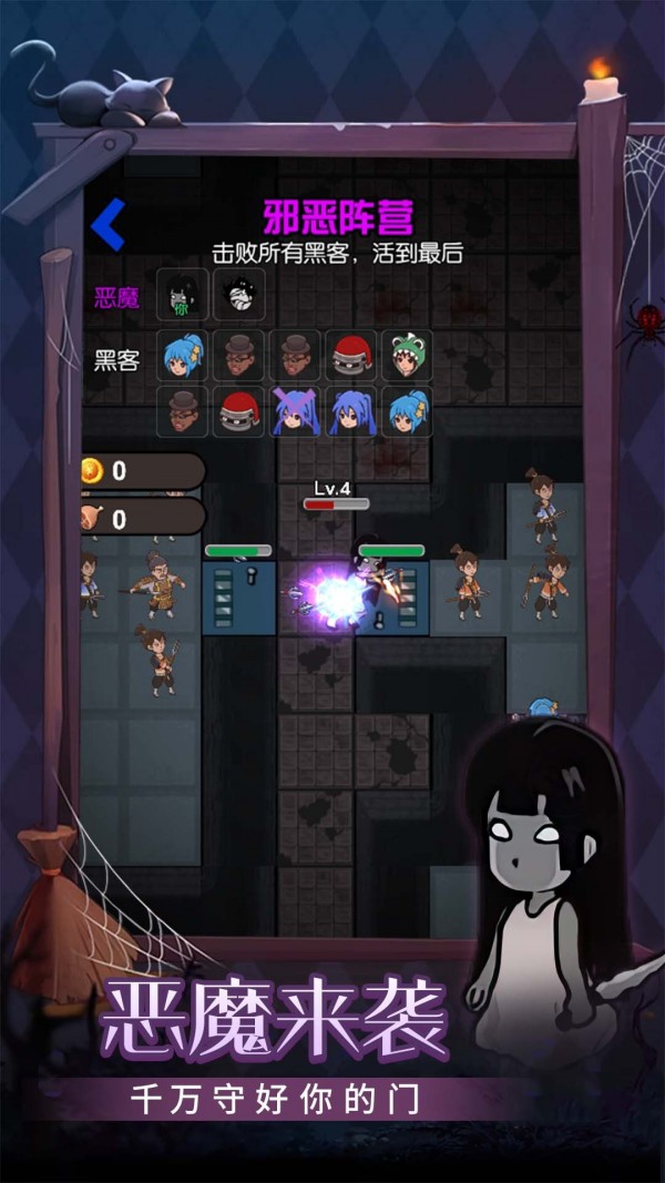 能够在房间的空闲位置花费金币在商店中购买武器,能够将购买的武器放置在合适的位置上,就能帮助完成防御任务,但是防御的主体还是房门,花费资源不断的提升房门的等级,快点下载游戏吧!