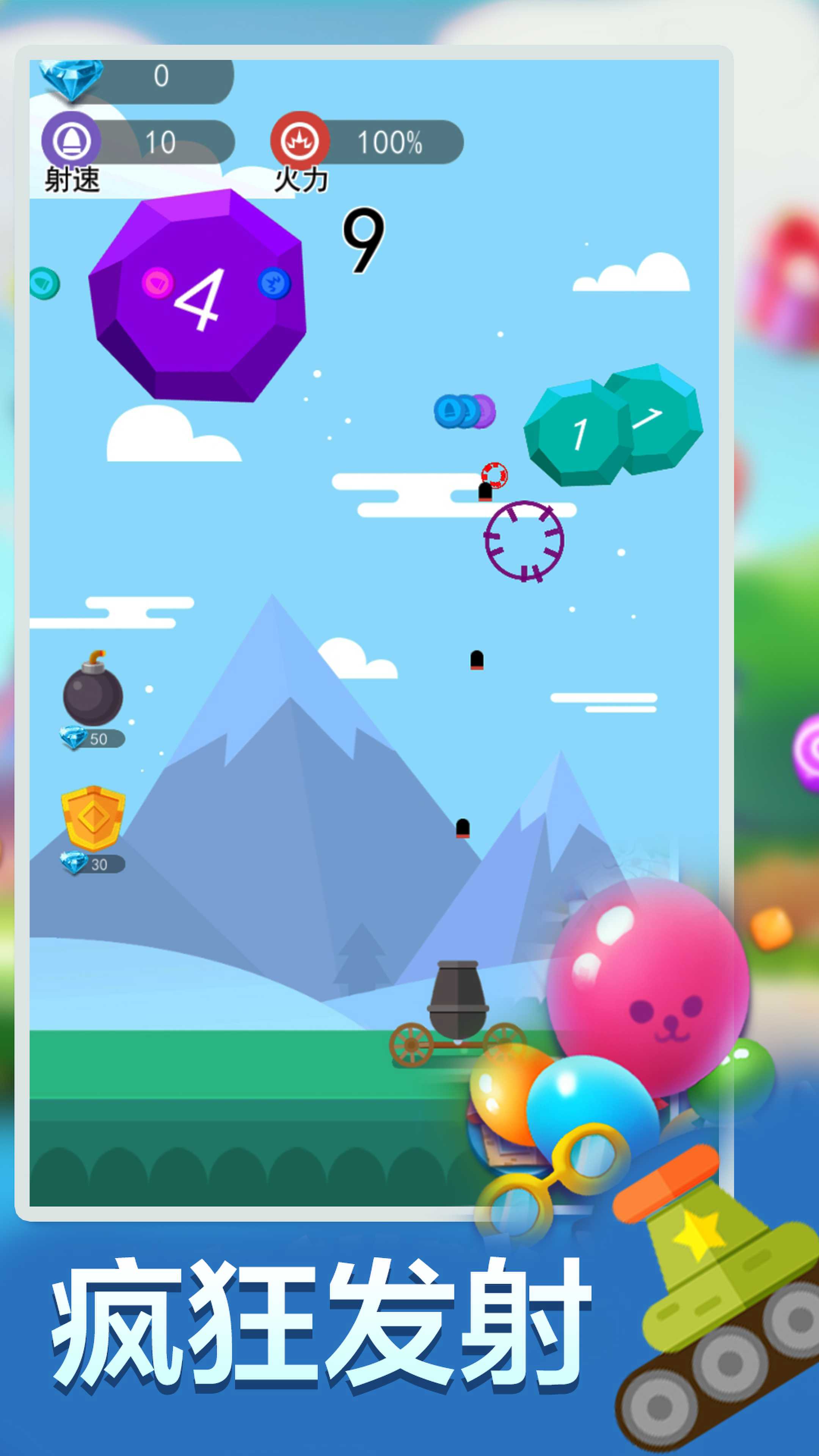 在关卡的上方会有很多石头出现,这些石头上面的数字都是自己需要射击的,大炮会在关卡中不断的发射减少石头的数字,只要挑战的时间越久获得的奖励就越多,快点下载游戏吧!